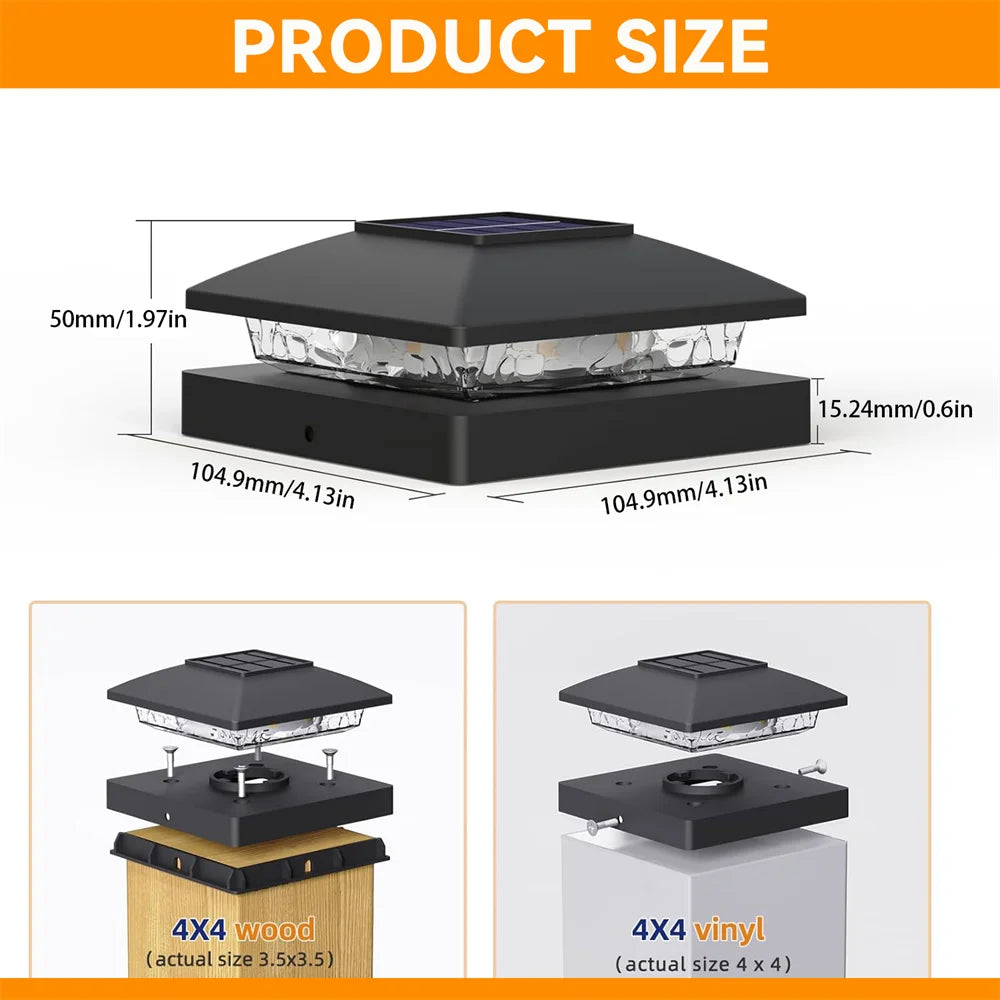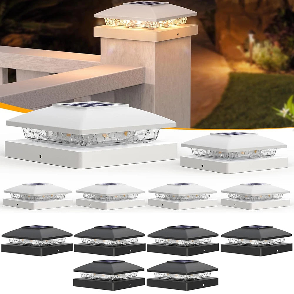 6PCS 4x4 Solar Post Cap Light - Solar Powered Warm White Fence Lights for Wooden/Vinyl Posts Outdoor Lighting for Garden & Porch