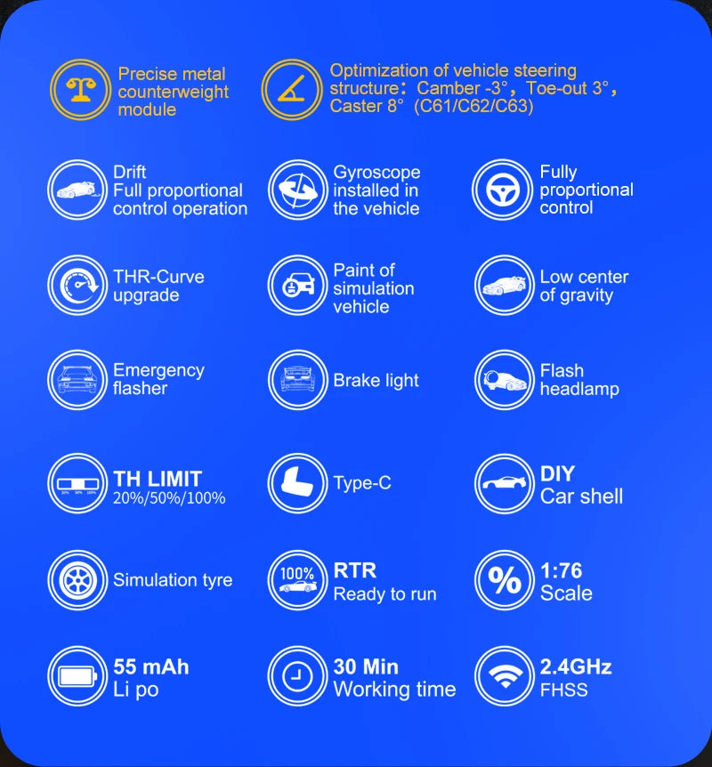 TURBO RACING C61 C62 C63 C64 C74 1/76 MINI RC Electric Remote Control Model Car Drift Racing Adult Desktop Toys