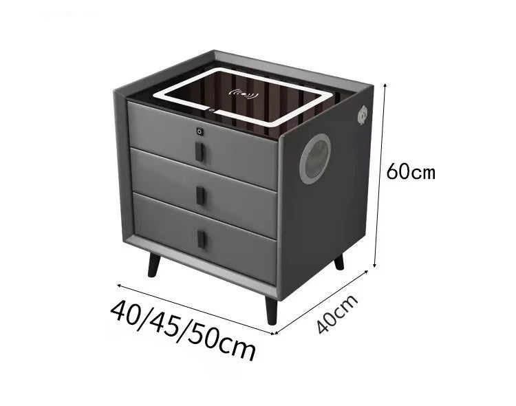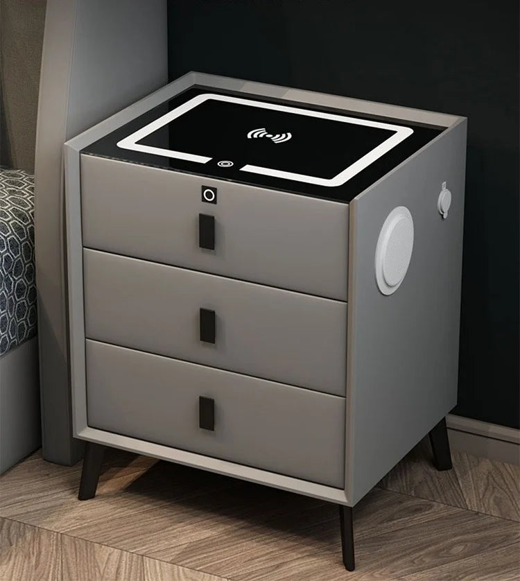 3 Drawers Smart Bedside Table with Wireless Charging Solid Wood Bedroom End Table with Fingerprints Lock Hotel Nightstands